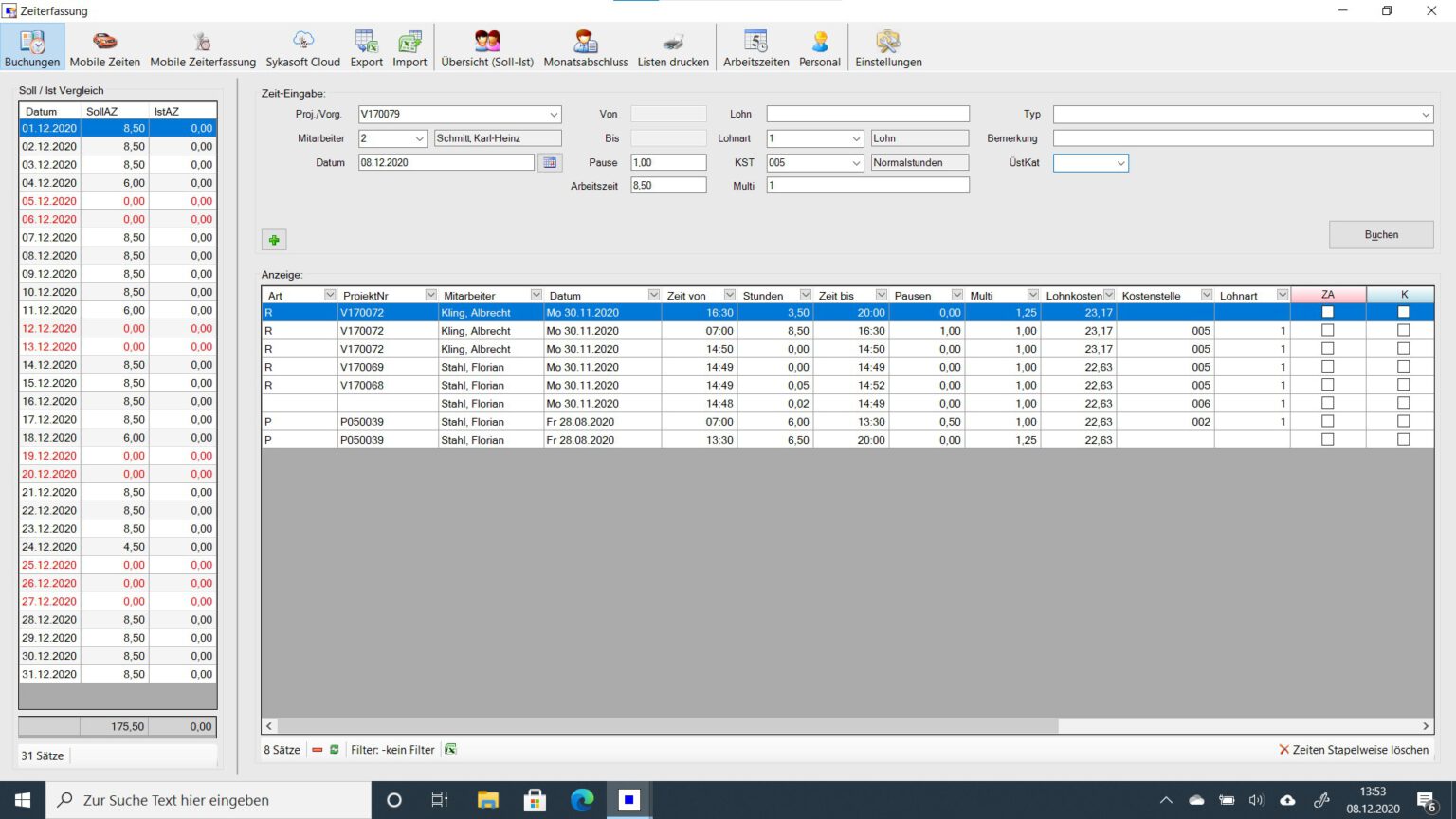 Zeiterfassung (Büro) – für das Erfassen und Auswerten der Monteureinsätze. Verschiedene Arbeitszeitmodelle, Übersicht über die Einsätze, Soll-Ist-Auswertungen, Monatsabschluss. Zeiten aus mobilen Apps.