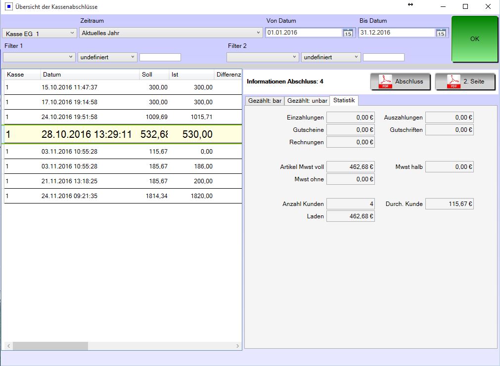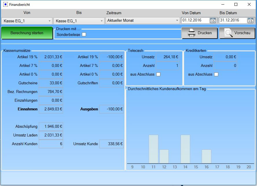 Statistische Daten sind bei jedem Abschluss sofort sichtbar (inkl. der Kundenverteilung des aktuellen Tages).