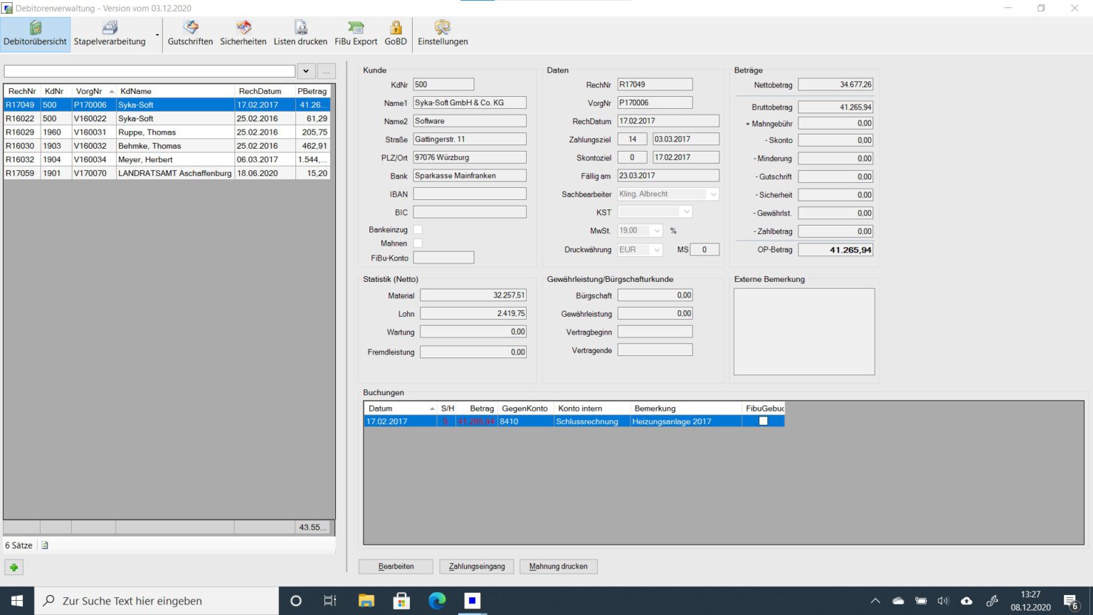 Verwaltung von Ausgangsrechnungen, Mahnungen in verschiedenen Mahnstufen, Mahnvorschlagslisten, Überweisungsträger, Statistiken.