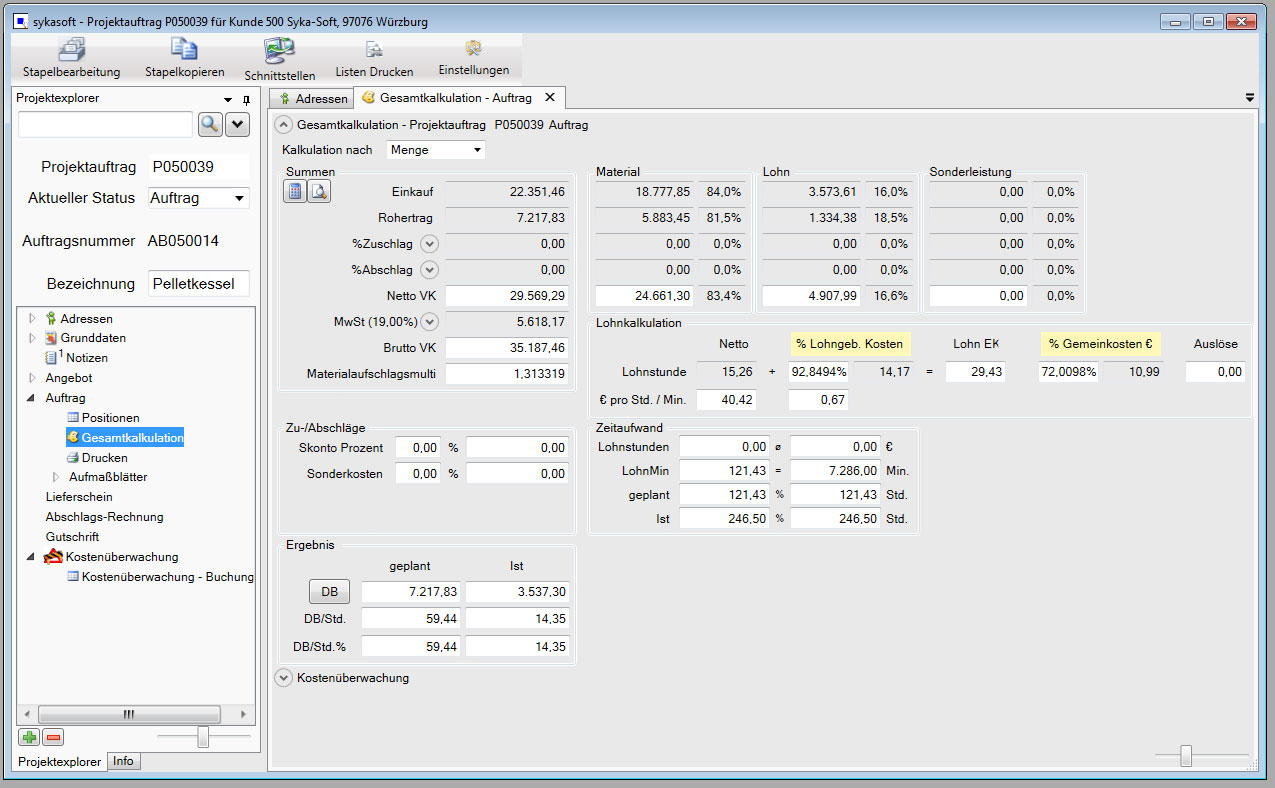 Übersichtliche Auswertung der vom Programm Projektauftrag bereitgestellten Kalkulationsdaten.