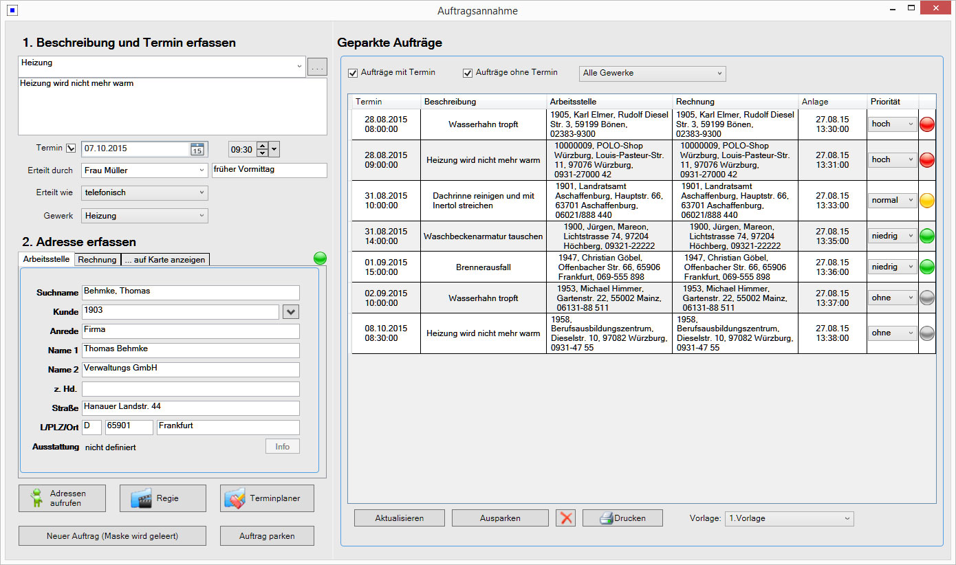 Für die kundenorientierte Schnellerfassung von Aufträgen – leicht zu bedienen, mit Übergabe von geparkten Anfragen an Terminplaner