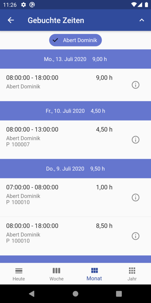Perfekte Übersicht der geleisteten und zu leistenden Stunden direkt am mobilen Gerät