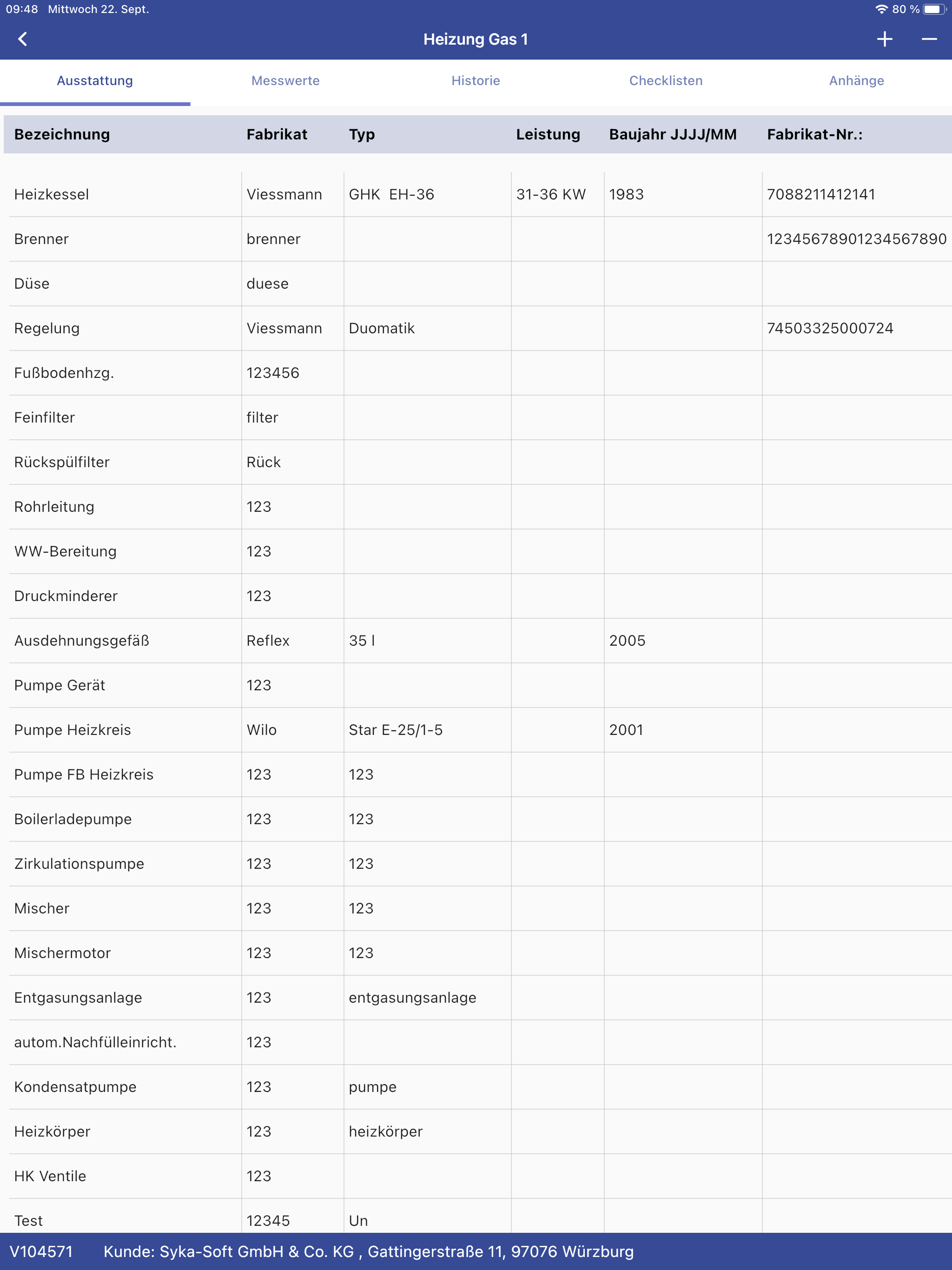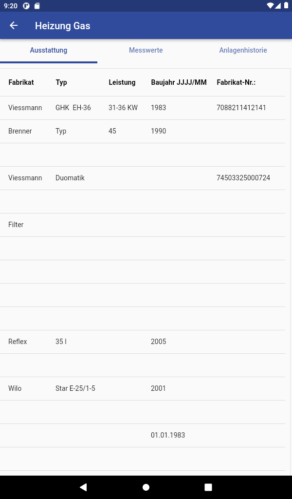 Anlagedaten und Messwerte bearbeiten