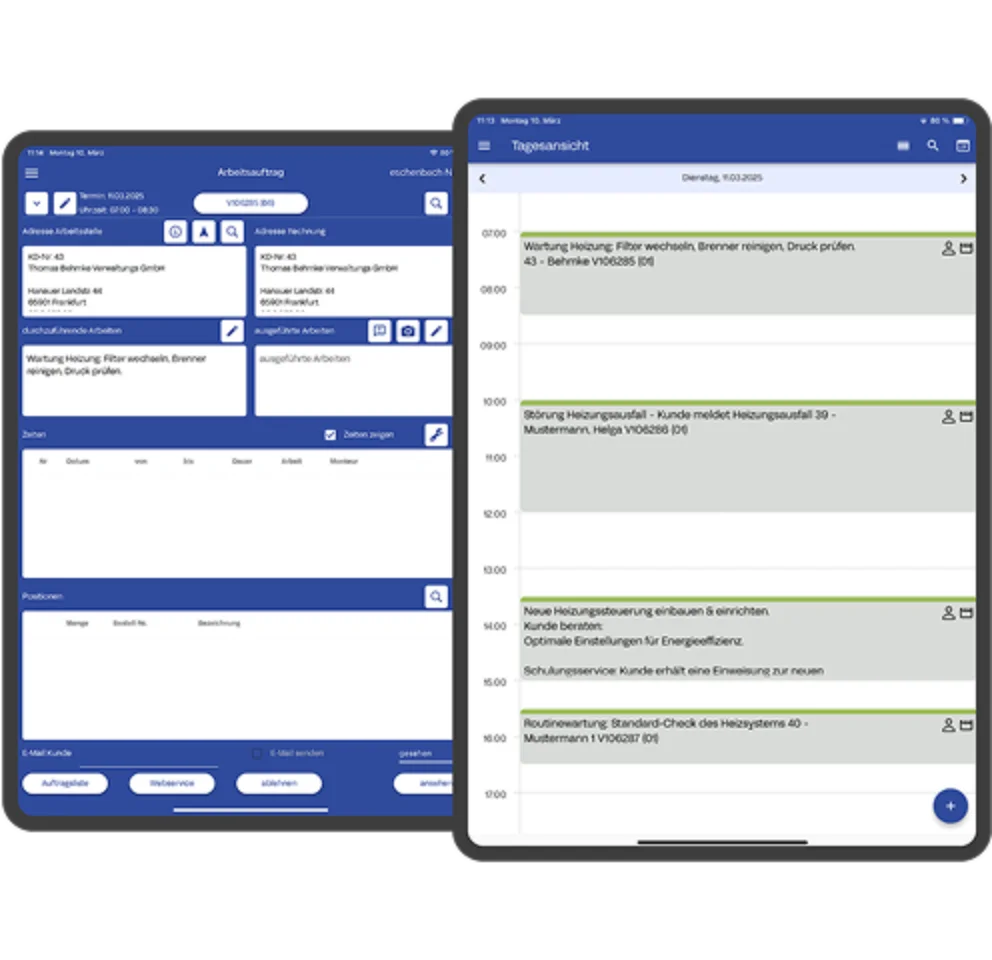 Optimieren Sie Ihre Abläufe mit unserem neuen mobilen Terminplaner, der nahtlos mit Ihrem ERP-System und den mobilen Arbeitsaufträgen verknüpft ist.